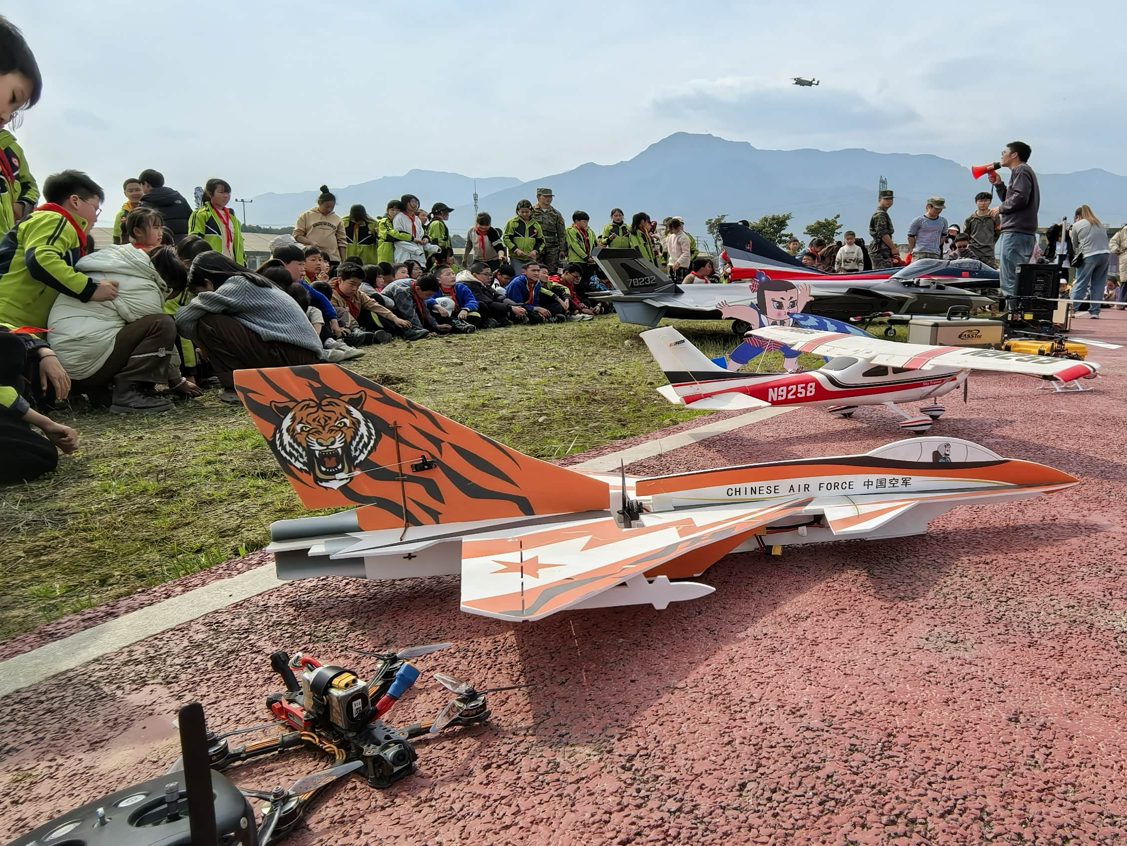 到了试飞环节,草地瞬间热闹起来。孩子们把模型轻放在地上,后退几步,眼睛紧紧盯着。有的深呼吸,有的悄悄攥紧衣角,像要送自己的 “宝贝” 去完成一场重要考试。小组之间还互相打气,“你别慌,肯定能飞起来!”“要是歪了,咱们就赶紧调整!” 那股子认真劲儿,仿佛眼前不是模型,而是真正的战机要翱翔。