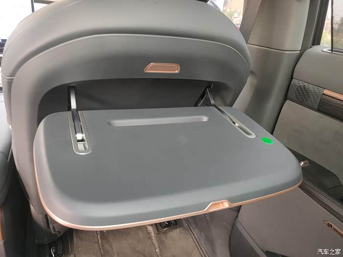 再者,第二排右侧配备的航空小桌板,不仅增加了车内的实用性,还提升了乘坐的便利性。这个小桌板可以为乘客提供放置物品或进行工作的平台,使得长途旅行或商务出行更加方便。