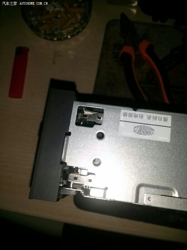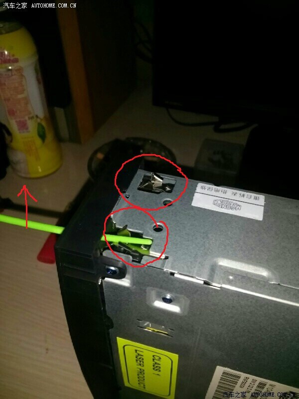 目的就是把红圈的金属片压下去,露在外面的小棍向外压,里面部分就把金属片压下去了,就这样。