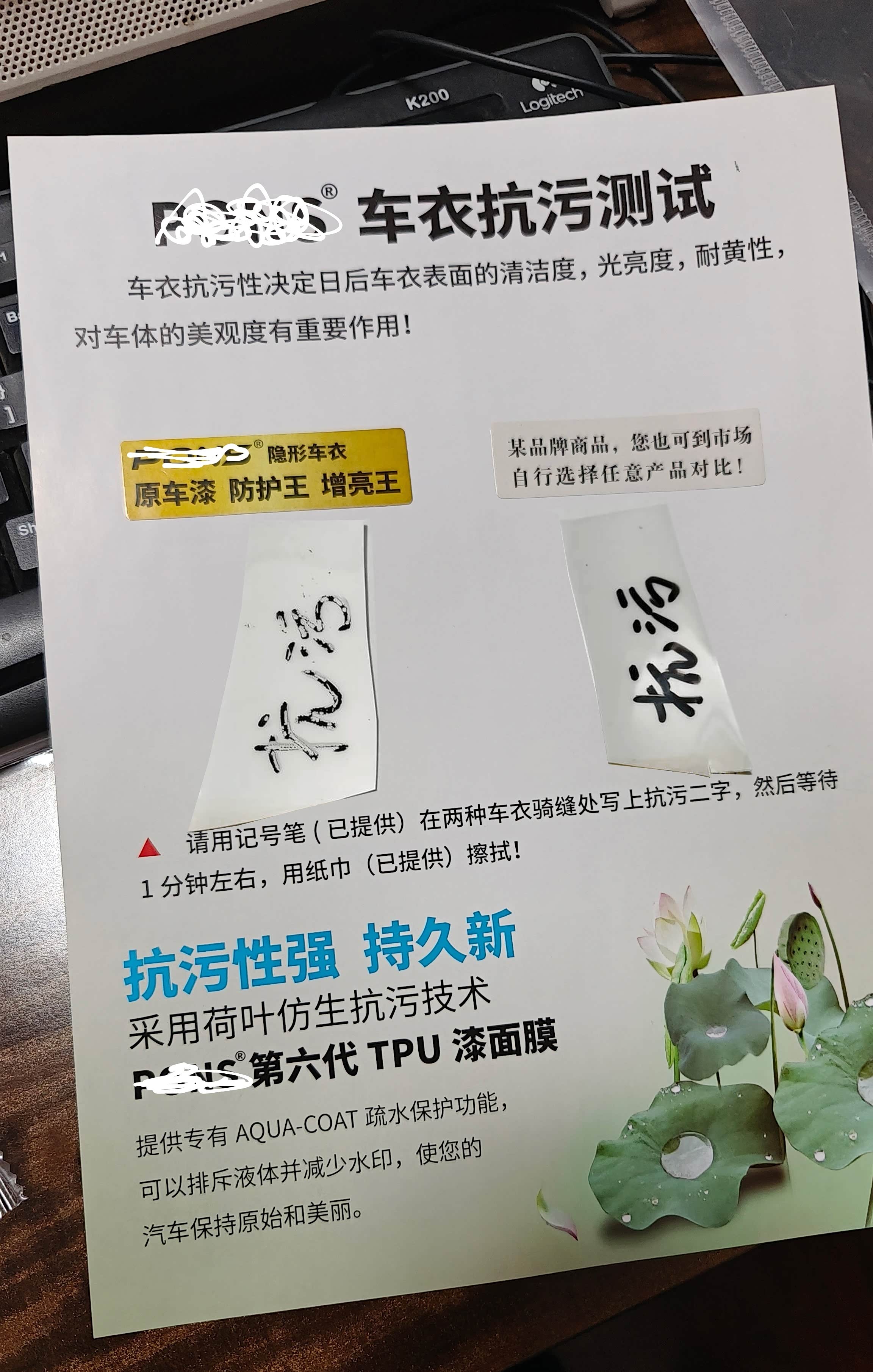 我买的车衣上面很难写上字体,附着力很差。对比的车衣,很容易写上。