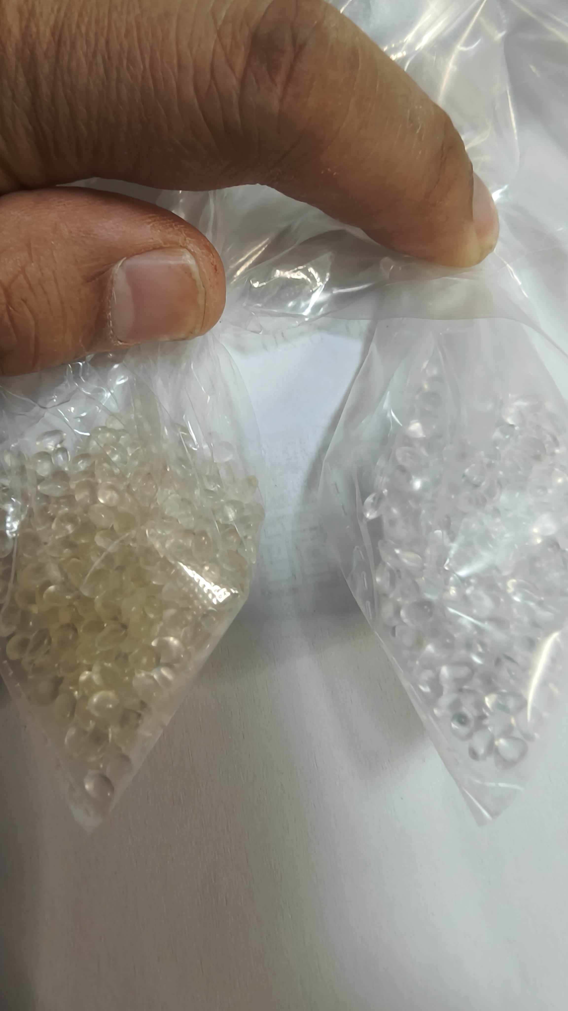 这个颗粒没有任何变黄,晶莹剔透!效果很不错. 这样的原材料不会变黄