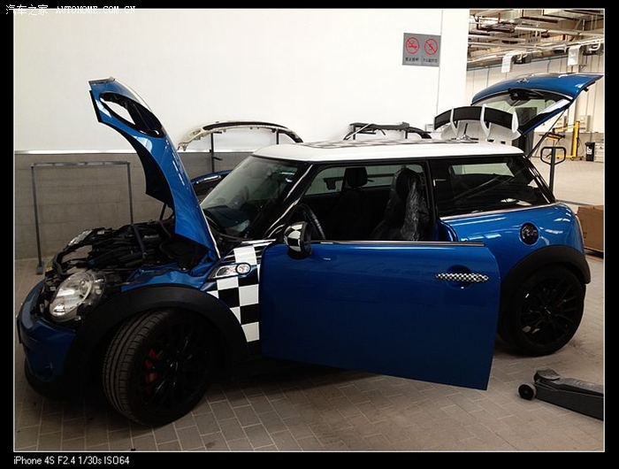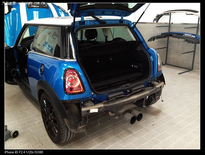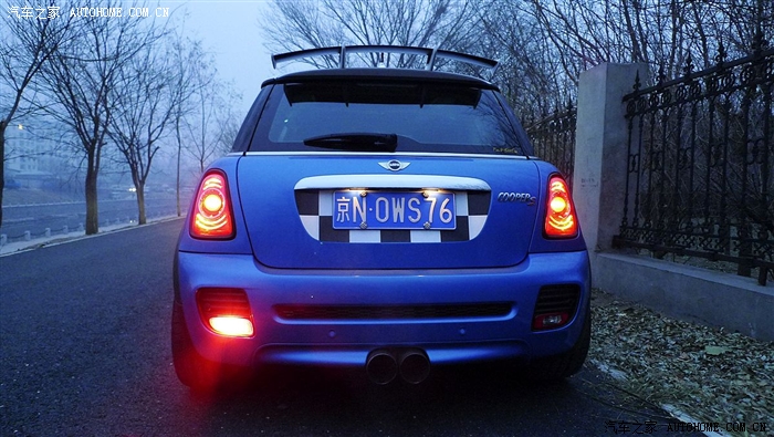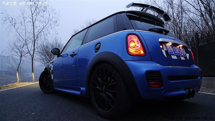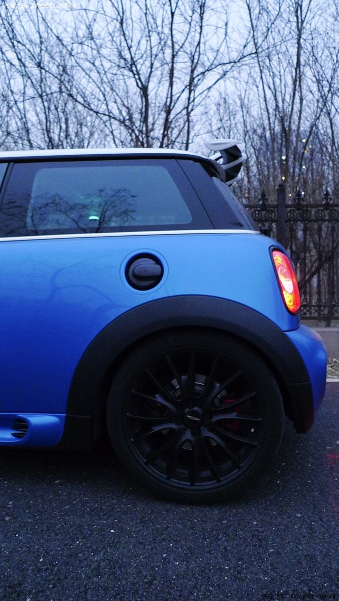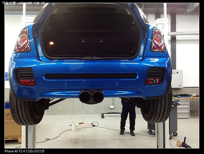 安装+调试+抛光完毕用了6个小时,因为原厂是两个后雾灯+两个倒车灯,改成JCW都变成一个了,所以灯光报警目前还无法消去,其他都很完美。感谢施工师傅的细心工作,可能因为我是在这里第一个改包围的,所以感觉我家小兰是他们第一次施工,都是处女作了!