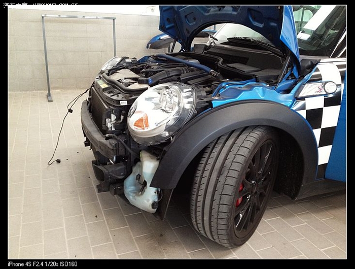 换包围还要把前杠梁换掉,仔细看看MINI的前杠梁,绝对够结实!