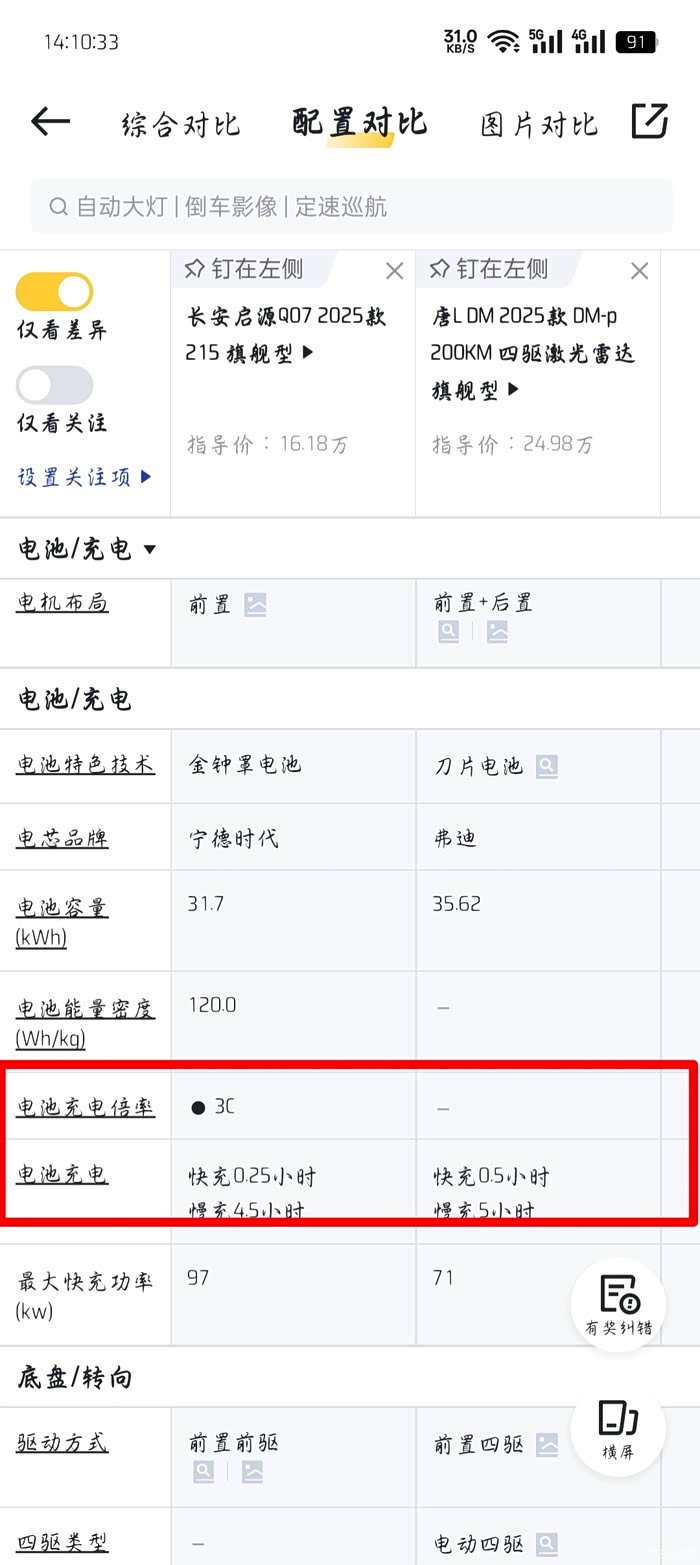 启源97kW峰值快充功率对于31kWh电池来说,这个功率水平非常高(官方配置里写的3C),很有诚意!宁德时代电芯确实是很强,用大品牌的电池,确实靠谱
