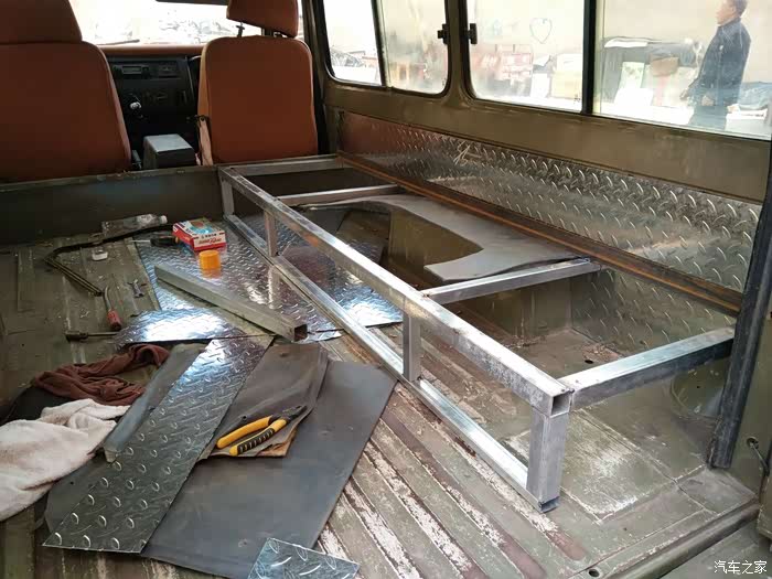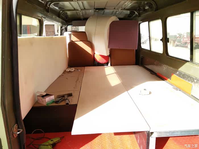 思考了许久 我的方案 就是 两次 放箱体 中间是活动板 这样又能在箱体里放物品.有能睡觉 拉人还多.