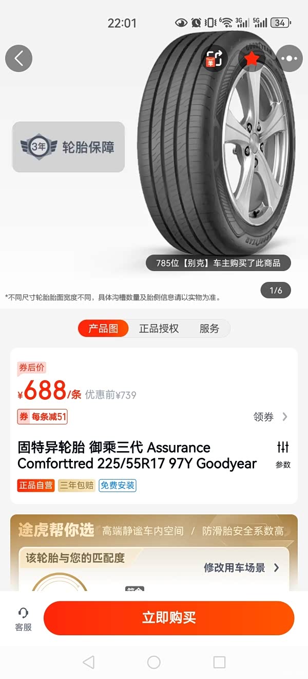 如果很在意舒适度和胎噪的话,可以选择固特异御乘III代轮胎,这种高端品牌的静音胎做得还是很不错,采用了ANX静音科技,胎噪抑制方面做得很好,而且它的抓地力强,刹车距离短,用起来还是相当给力的。