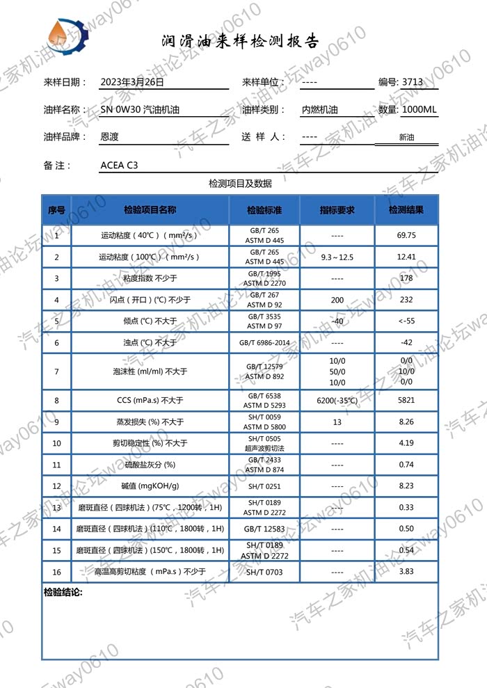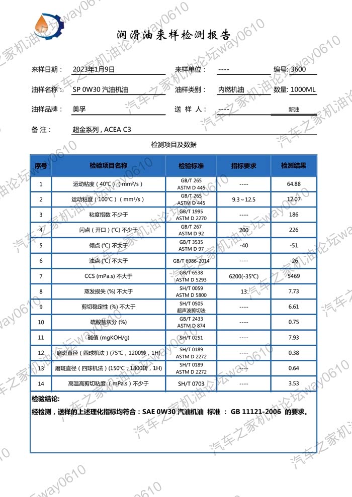 检测只对样品负责,样品由论坛车友“疾風_暗影”提供,一升装未开封新油。