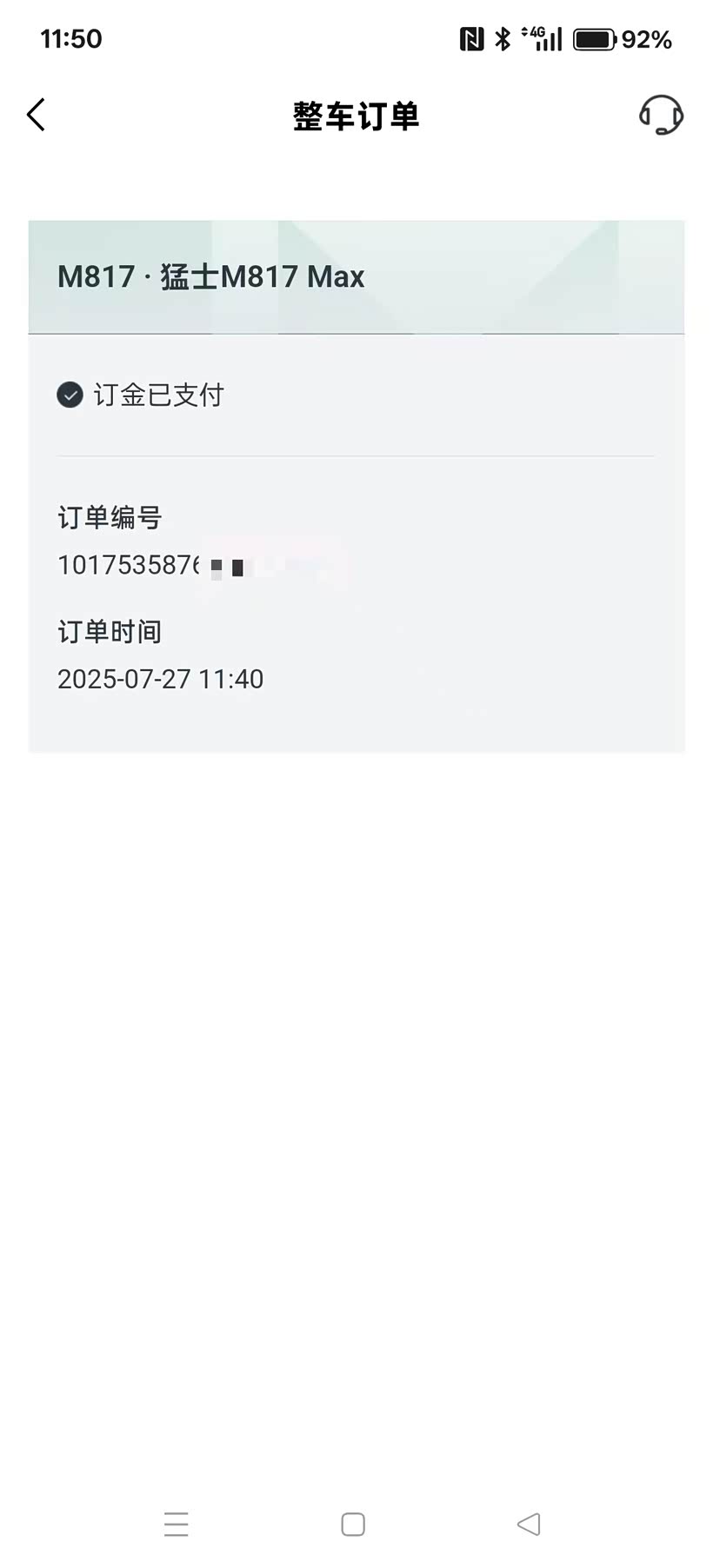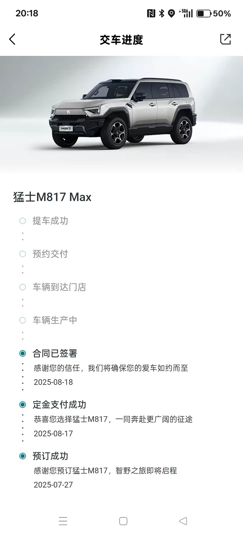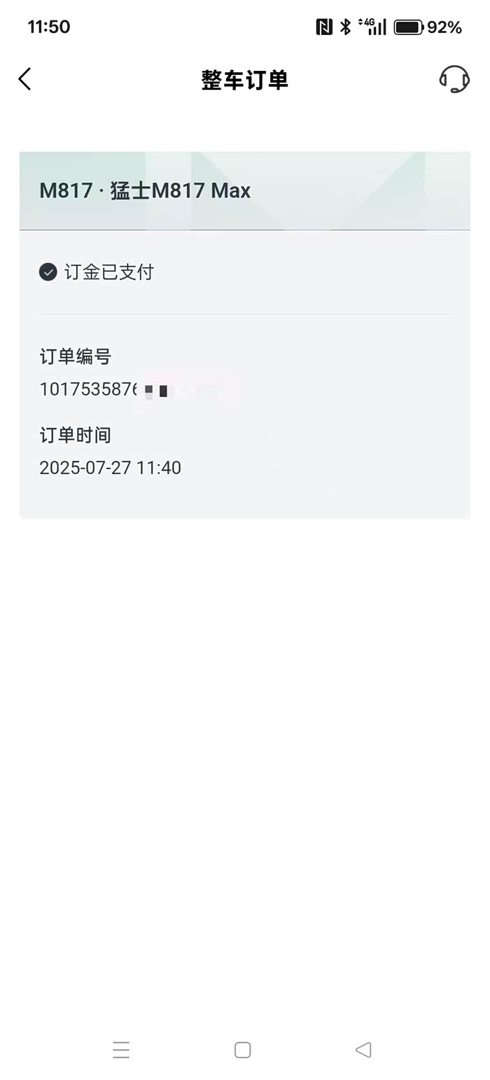 和老婆商量了一下,都对这个车各方面非常满意,所以没怎么纠结,7月27日在4s店内就上猛士APP小订了。