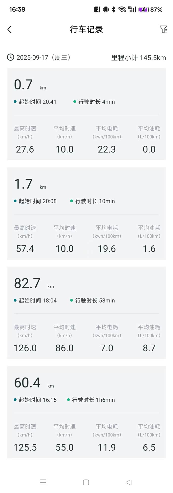 9月17日,提车当天返程的能耗: