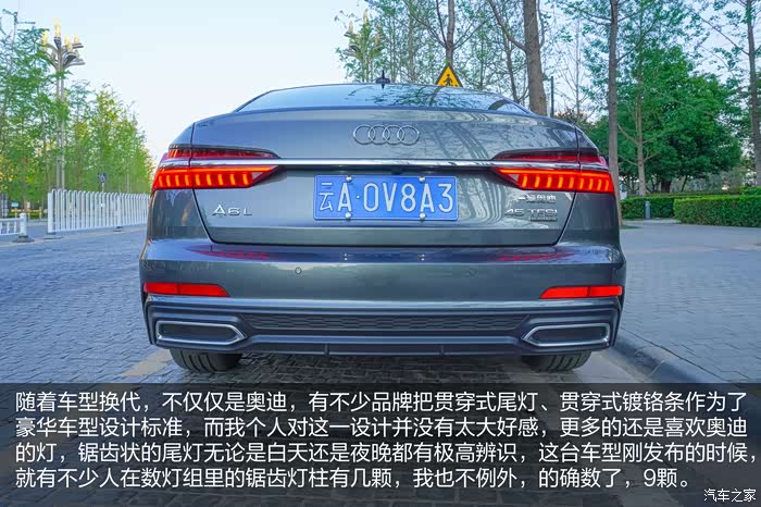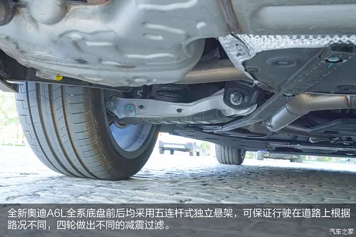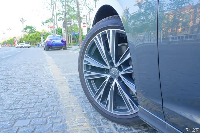 搭载255/40 R20双五幅大轮圈,其目的还是凸显运动风格,根据批次不同搭配的轮胎不同,我驾驶的这辆全新A6L搭载的是倍耐力P ZERO,与我自己驾驶车辆搭载的P7同一品牌,能够得到舒适与清晰的路感,舒适度也较高,唯一缺陷可能就是不耐磨了。