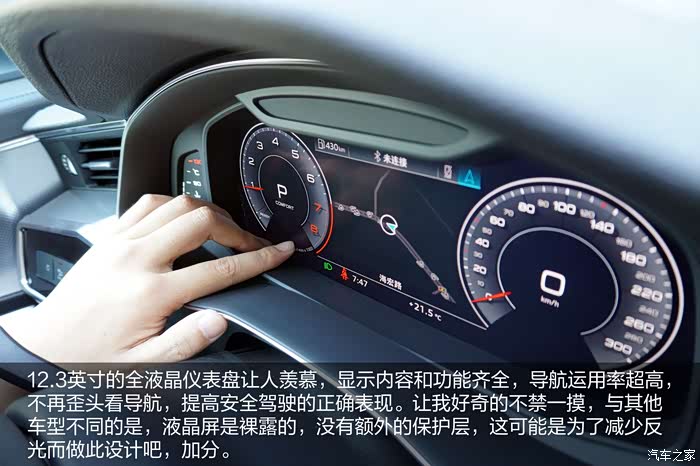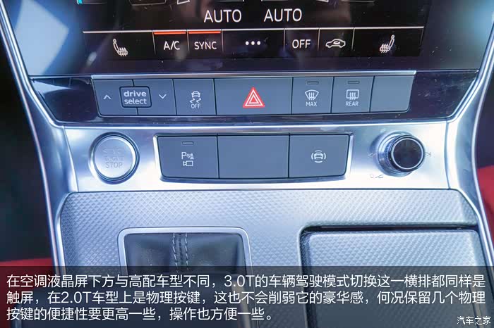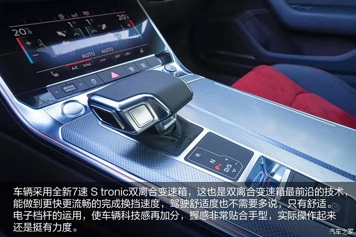 中控台总体设计与上一代车型相比,可谓是颠覆性设计,当下流行液晶屏和触摸屏,全新A6L也跟随上了时代脚步,除全系标配12.3英寸全液晶仪表盘外,10.1+8.6英寸中控双触摸屏也是全新A6L的一大亮点,上区车载功能设置、下区空调独立设置,为了防止误操作,触摸屏带有重力感应,得到指尖重力反馈后才可以正确操作,其反应速度与流畅度都有极好的体验感。