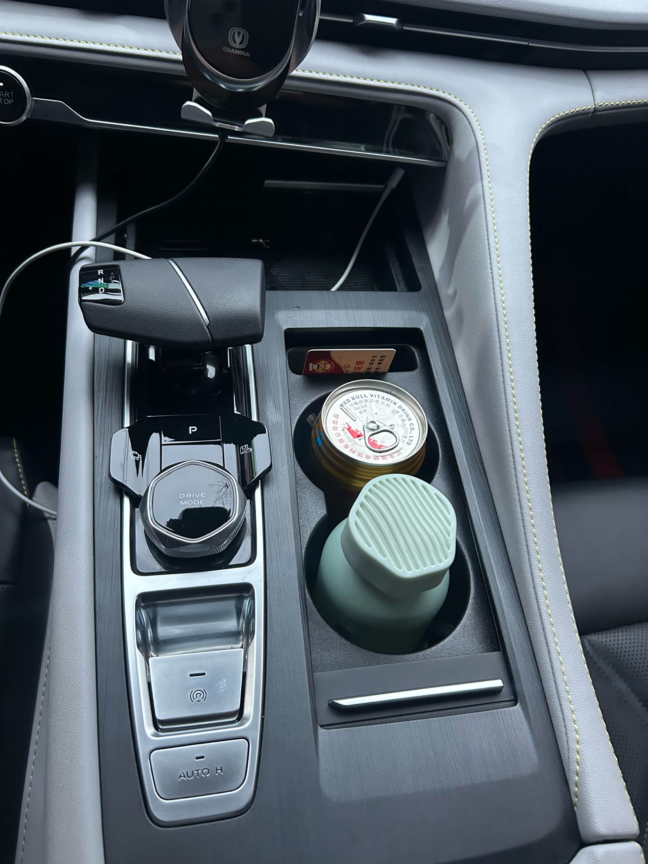 偶然间在清洁车内时发现中控台无线充电区左侧有个小孔,原本设计用于无线充电散热,本身过于鸡肋,可以将数据线从小孔穿过,这样较为美观,数据线也能很好固定!