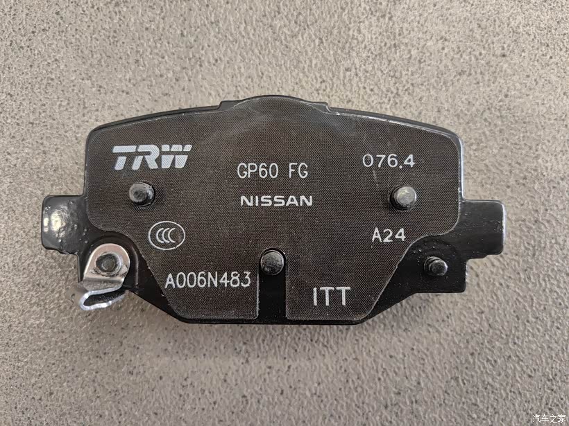 刹车片和日产车型都是通用的,看了一下品牌是TRW也就是天合。之前前面的刹车片是自己在外面买的,用的是布雷博,大家也可以选一下。