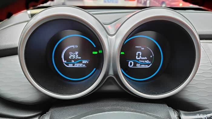 双炮筒设计的仪表盘,时速,续航和里程等主要信息一览无余。中控屏幕不是特别大,但基本够用了,主要就是听歌,控制空调,看看胎压,了解能耗。这个原车屏幕不能导航,得在手机上下一个carplay,才能和手机连接使用,不如直接用手机方便。