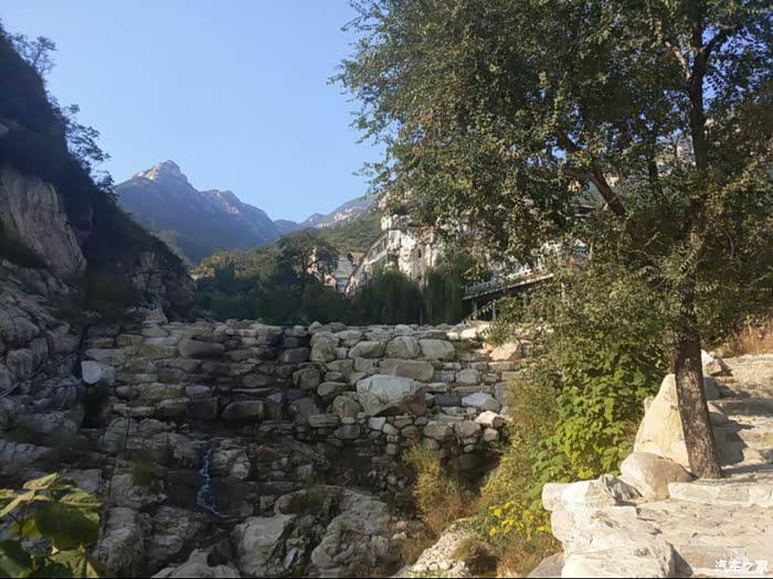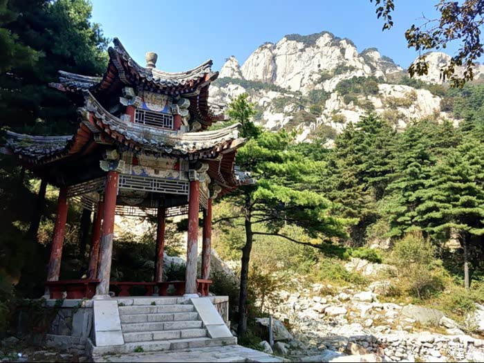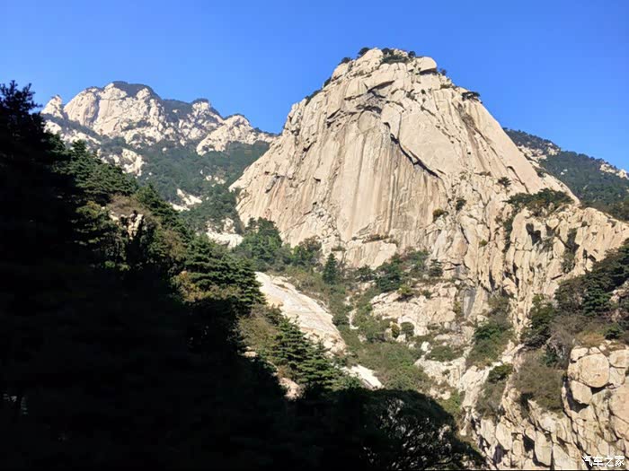 隐藏在树后的就是在户外驴友中名气较大的“空招”,空招是济南军区空军招待所,是几条户外穿越线路的交汇点,从天井湾,卖饭棚,老虎口上山的路线都经过这里