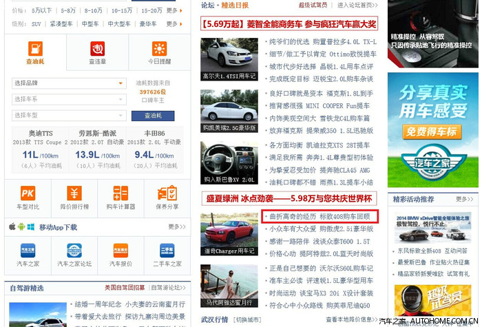 2014-7-16 意外登上 “汽车之家”首页,截图留念!谢谢朋友们的支持和推荐!!!!分享生活心情,快乐出行!!!~