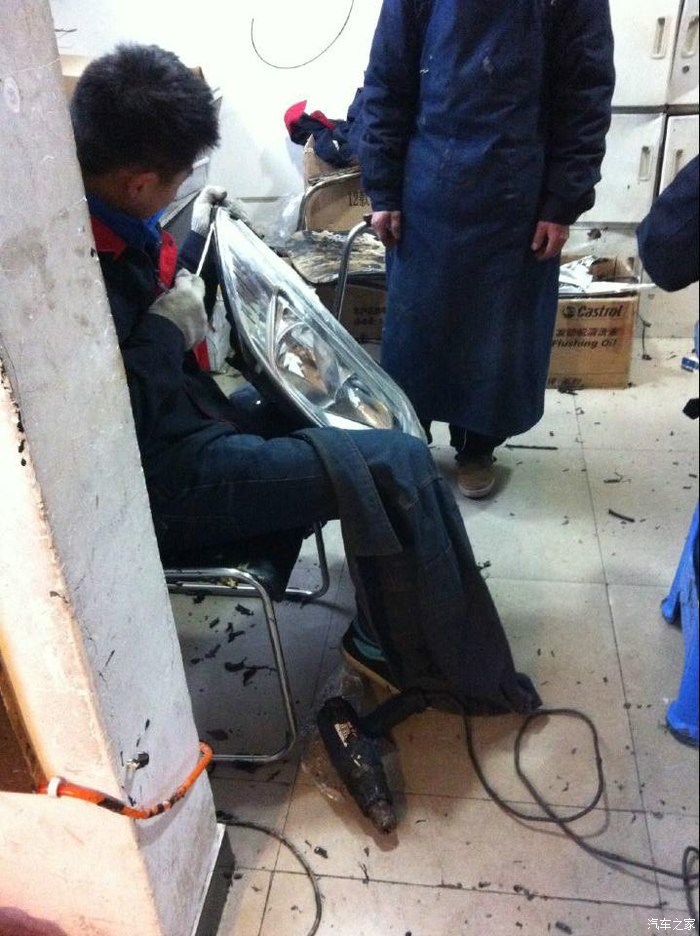 接下来就是开灯了,这是个漫长的过程,相当费力,两个师傅都馒头大汗,给我换灯这两个年轻小伙子手艺很好,而且服务态度也相当好,点个赞!!