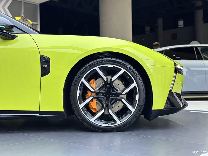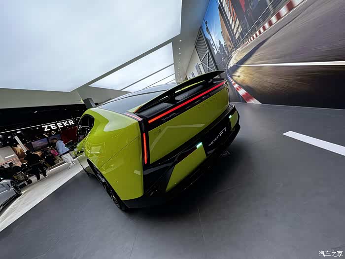 来到车身侧面,20 英寸双色轮毂的辐条设计像展开的机械羽翼,搭配隐藏式门把手,关门时门把手自动嵌入车身的瞬间,“科技感” 不再是抽象的词。最让我惊喜的是车尾的智能升降尾翼 —— 工作人员演示时,它从车身缓缓升起的动作很丝滑,不像有些车型那样生硬,据说时速 90km/h 会自动开启,既能减少风阻,又能增加下压力,实用与颜值兼顾