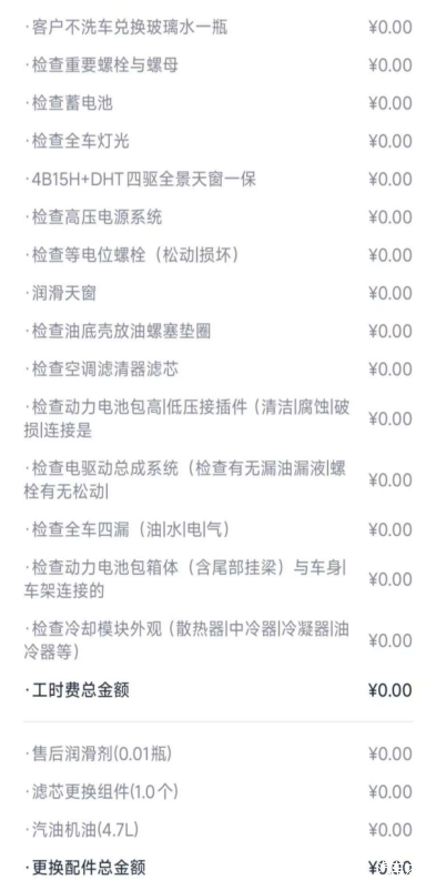 车从提回来到现在也开了将近1万公里了,首保是6个月内,或者燃油5000公里,我是主要用的电,用油开了才1500公里,一共加了三次油,进了第6个月,4S店也总是打电话,询问什么时候有时间去做首保,因为首保比较重要,我也是一直拖到最后一个星期才去。