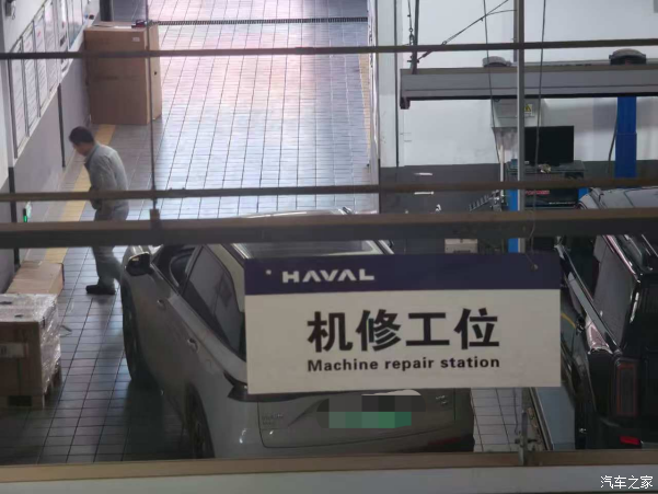 预约的上午9点到店,我8点50就到了,路上还碰见了一辆拉马的货车,到了后因为有预约就不用排队,把钥匙放在车上,告诉工作人员就直接让我去二楼休息室了,一上楼接待小姐姐很热情,问需不需要喝水还是咖啡,我就拿了杯热水,就去坐那等着,二楼也可以看见工作车间,过了会我就看见我的车开进去了,师傅准备检查,也是升起来看看底盘什么的,拿相关的仪器进行各种测试,我就看了一会就又回去坐着了。