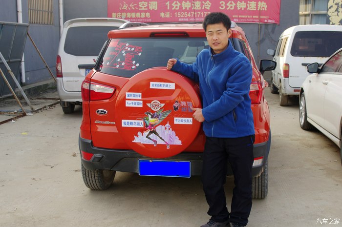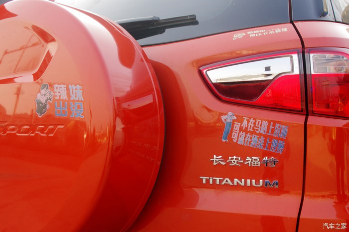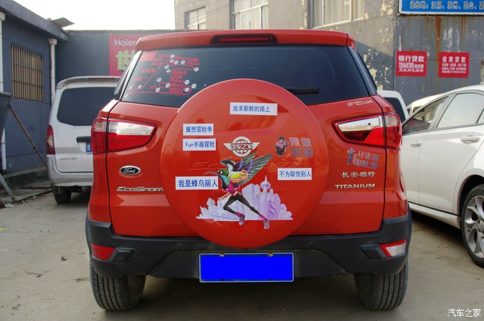 于是我们就选中了里面的几句话,分别贴在备胎盖上,最后中心部分交给汽车之家车标