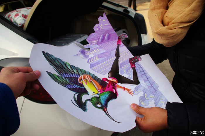 一阵刀光剑影之后,属于我俩共同的作品出世了----福特翼博备胎创意秀之蜂鸟丽人