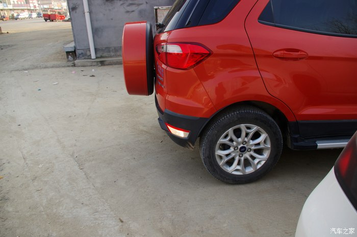 短小精悍的车身,SUV造型,外挂式备胎,还有车主选的这个星火红色,处处体现着翼博车的灵动可爱,要不是有要务在身,非得磨着车主让我一试身手不可