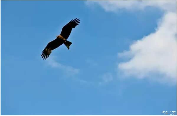 采蘑菇时听到鸣叫声,也学着声音打口哨,引来一只老鹰在上空盘旋。