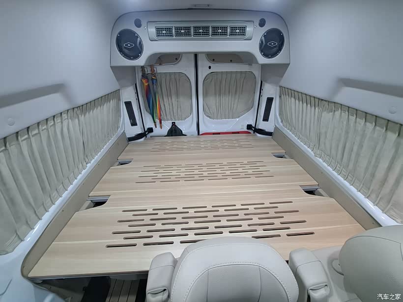 锂电池(6度电)、高原柴暖、驻车空调、3000W逆变器、220V电源、***L音响+低音炮、多功能床、冰箱、抽屉折叠桌+洗漱池、电动踏板、隐私窗帘、前后保险杠、全车隔音止震、木地板、奔驰座椅+副驾旋转、顶柜。