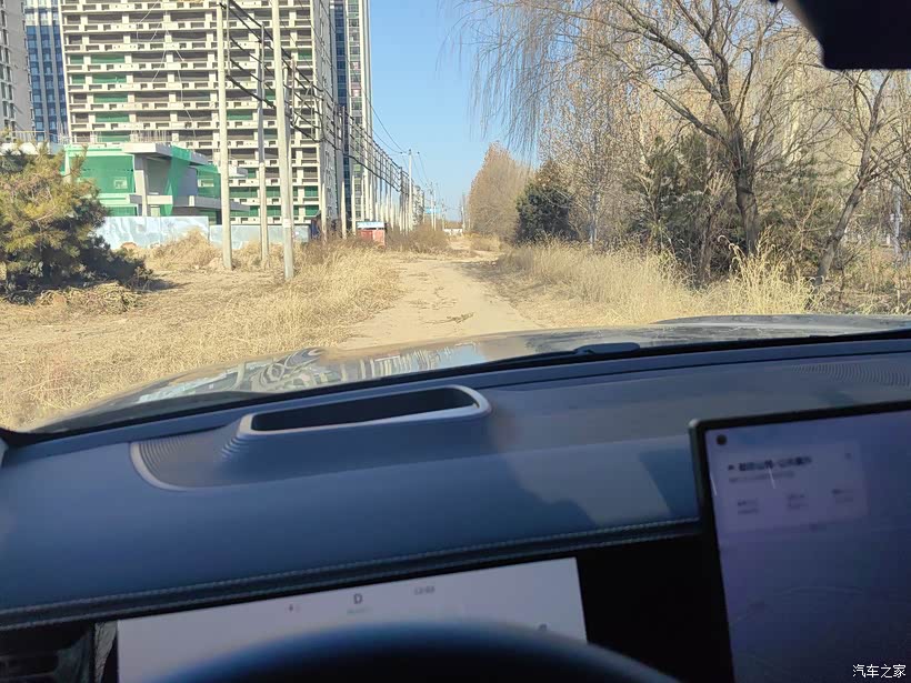 坐进车里往窗外看,视线里这路坑坑洼洼的,旁边还杵着半截没盖完的楼,枯草都快没过路边了。不过坐在车里倒是没觉得颠,座椅裹得挺稳,就是瞅着外面这路,总怕蹭到两边的荒草枝子。