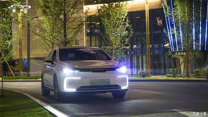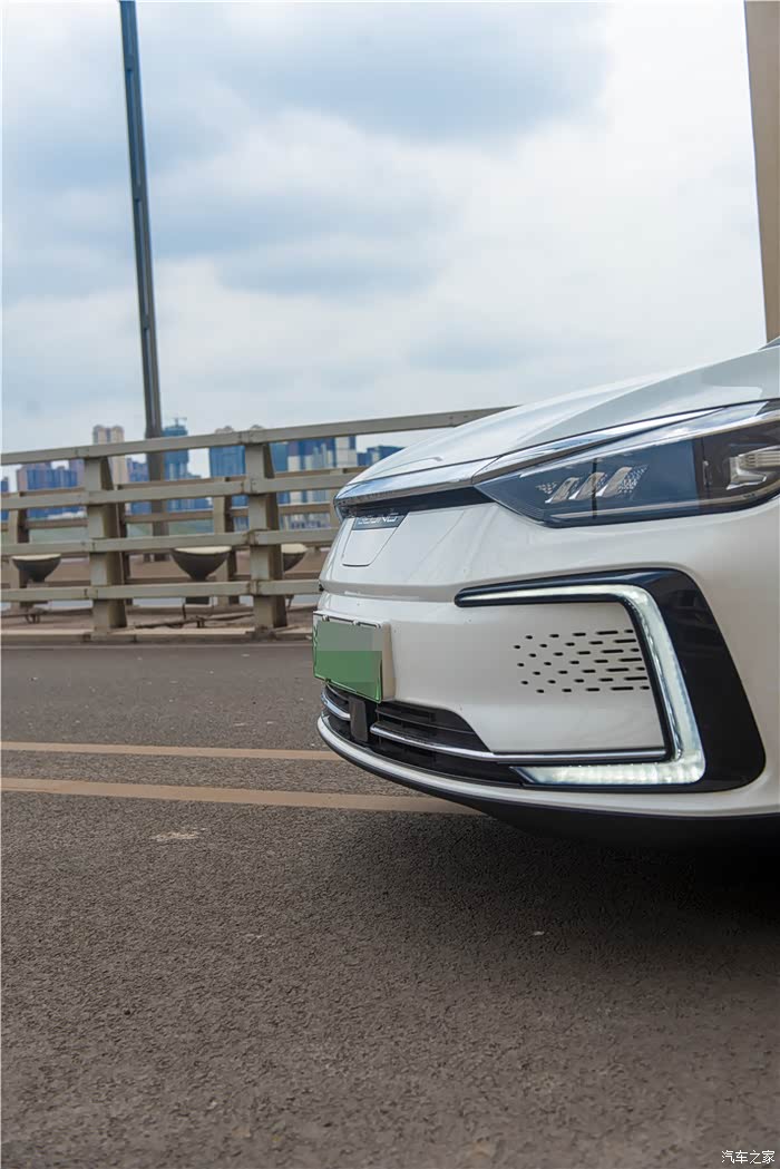 EU5前脸一气呵成,银色镀铬贯穿大灯,非常具有视觉张力,搭配两侧LED灯组、渐进式散热口和C形的日行灯,让EU5前脸极具辨识度,同样时尚感十足。