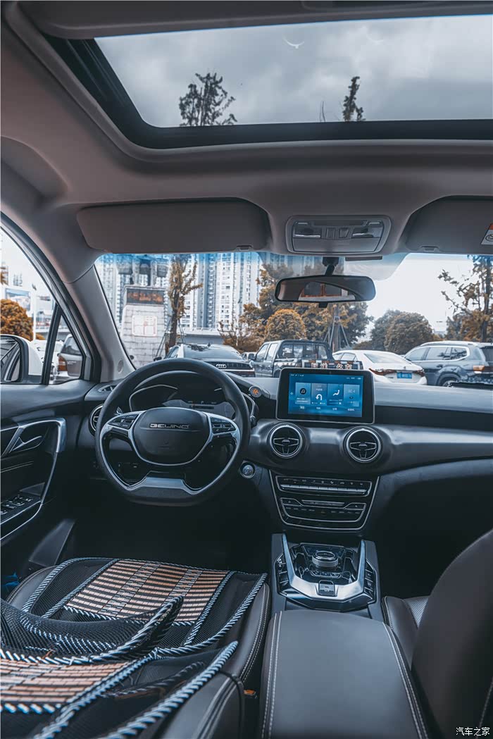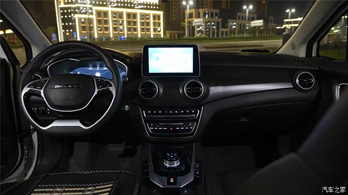 EU5中控区域采用了仿碳纤维饰板,营造了年轻时尚的氛围,十字型空调出风口也为整个内饰增加了一些立体感和精致感。