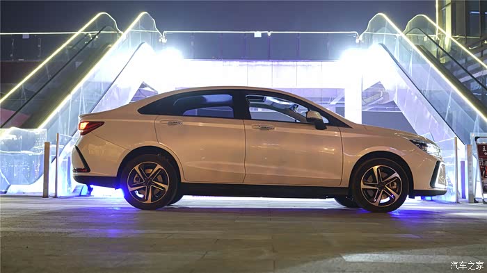 侧面双腰线的设计让EU5立体感倍增,整个侧面线条流畅,长宽高分别为4650/1820/1510mm,轴距2670mm,作为一台紧凑级车型来说,EU5是合格的,而且在同级别车型中还是占了一些优势。
