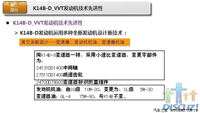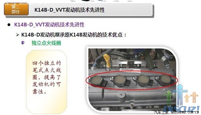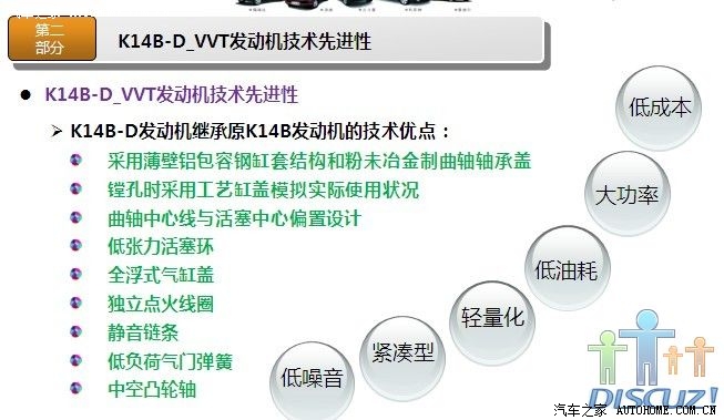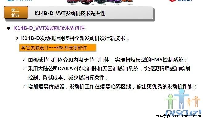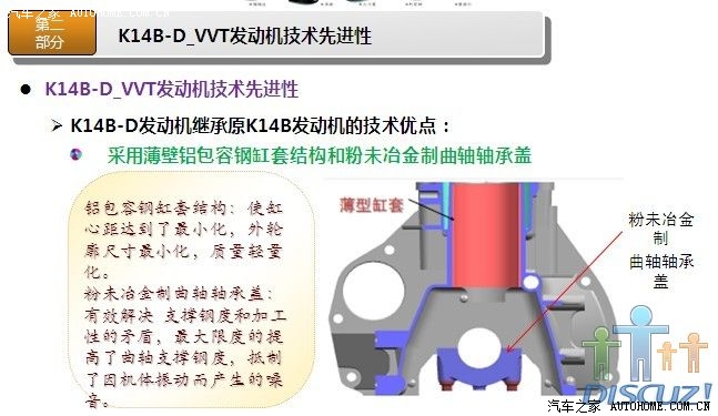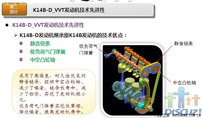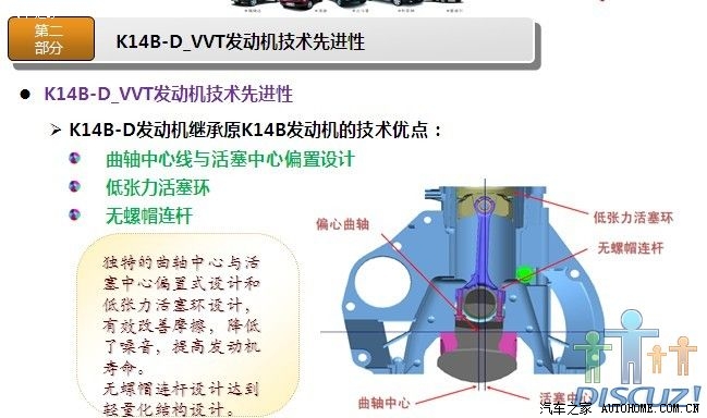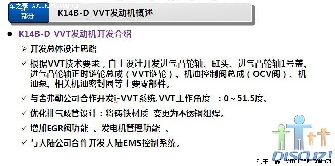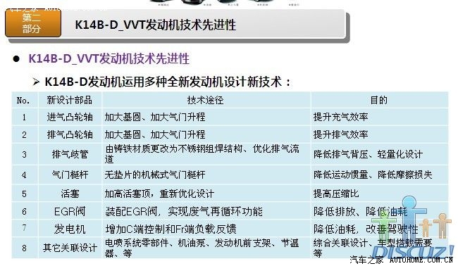 非常感谢各位提供的详细数据,昨天我和一位朋友谈到奥拓,他说他们的宣委(乡政府的宣传委员吧)也是买奥拓,还说很省油,看他的评价好象蛮高的,最近我也一直在北斗星和奥拓之间徘徊,想在国庆这段时间出手,对北斗星我已经用了很多时间分析了,也从他们的官网了解了不少那款发动机(K14B或K14B-D),后来我到长安铃木官网,但没看到相关发动机介绍,希望有知道的或官方内部人员能把K10B(或K10B1)相关详细资料发出来,就象K14B那样,下面我把K14B-D(北斗星用)的相关资料发点上来,供大家参考(希望K10B1也能这样发出来,如果K10B1也是类似的改进,那我就更放心了):