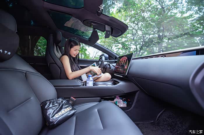 我们一起来到小姐姐的阿维塔12车子里面。这简直就是小姐姐的第二个家了~