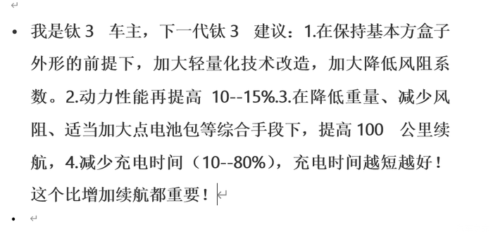 这辆车很符合我的心里预期,纯电官标501km续航,实际开下来,市区代步,夏天开空调的情况下,我可以开到400多的成绩,对我来说已经非常好了,驾驶模式平时我用经济模式,顾名思义,可以更好的保证续航,但是也不会感觉到肉,虽然我是后驱max版,加速比不上四驱,但作为日常代步的我来说,完全够用,高速则可以选择舒适或者运动模式,动力的话电门相应很快,加速线性,随踩随有。电耗的话平时百公里14个以下,高速的话之前单程100公里,16个不到,作为一台方盒子车型,风阻本就比传统车型大,所以我对这样的能耗很满意了。空间的话之前买车之前就听到过有人说钛3空间小,但是作为一个真正的车主,我的直观感受是并不小,我身高180左右,150斤,在前排坐姿调到舒适位置的同时,本人实际坐下后排的空间完全够用,各位可以亲自去体验下,后备箱空间对于我来说家用完全是够的,加上钛3的前备箱和小书包,相信可以满足大部分的车主需求了。和大家分享一个用车体验,前几天和朋友约了去隔壁市一个景点看日出,朋友点名让我开钛3过去,晚上十一点出发,凌晨12点多到的,原本准备开个钟点房休息下,等到四点多再出发去目的地,后来朋友说不如就在车里休息下,他也是第一次感受下在新能源车里过夜,我们沿湖边找了个车位停好,放倒座椅,打开座椅通风,不得不说这个功能真的实用,打开遮阳帘,映入眼帘的一片星空,好多星星,好久没有见到过了,此时此刻放着音乐,非常的满足,不知不觉就睡着了,不过开着空调用电是真的不心疼