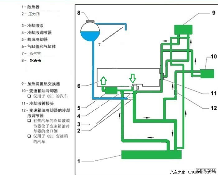 说的很对,和盖子真没关系,其他车比如日系车你看水壶是和大气直通的,其实在水箱处是有压力阀的,水箱内部还是有压力的,平时只是水壶不参与循环,只是冷却液少了的时候,起补充作用