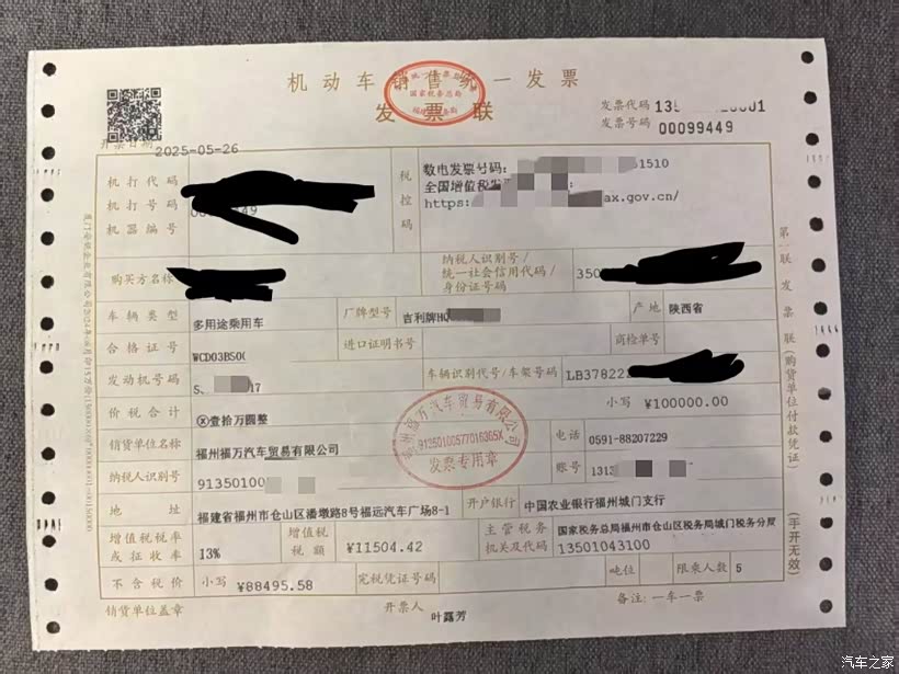 配置是山河款,裸车价是10.99万,应为手里没有报废和旧车之类的,最后和销售谈价格。发票裸车价9.1w保险费用5800,上牌600,走的厂家免息贷款最终落地12.4万,送三次保养+脚垫+玻璃膜+枕头,提车等了三天,提车的时候当时销售就绑了一朵大红花,拍完照又收走了哈哈,放了一个礼炮,就开去加油站加油了。
