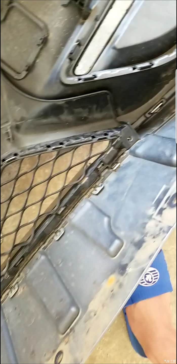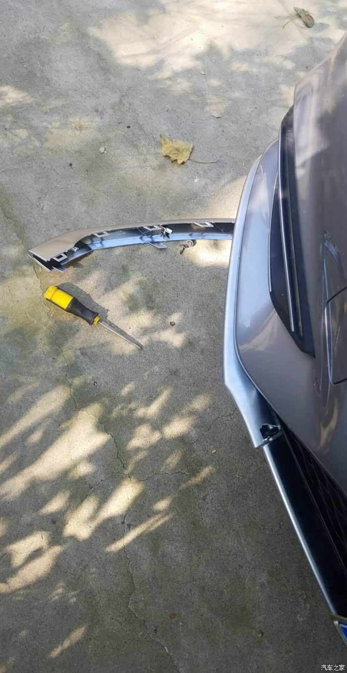 最后就可以卸下前保险杠了,两边的卡扣拉开就可以拿下来了,不过拿下来要注意,转向灯。还有一个温度传感器。在保险杠上,把螺丝拧下。卸下来。这样保险杠整体就卸下来了。