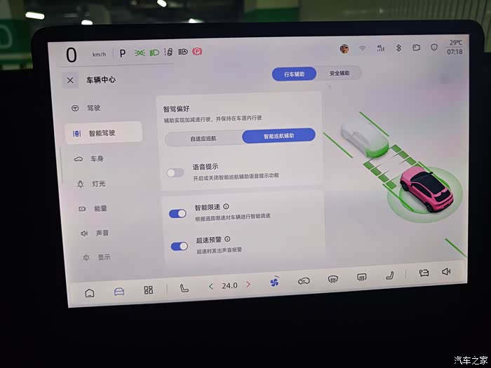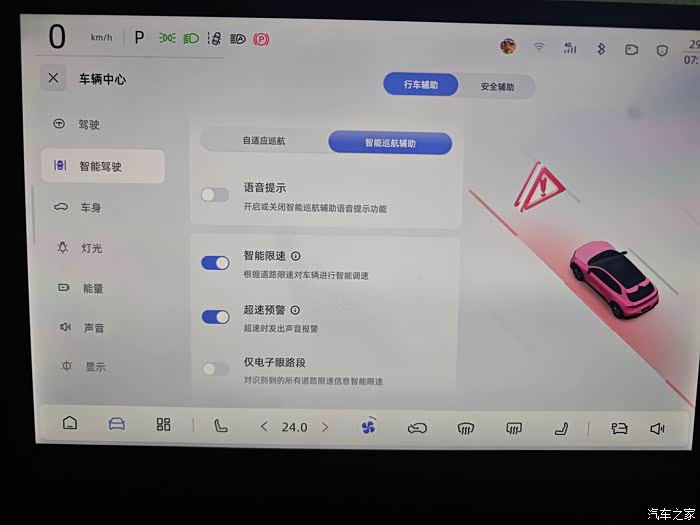 功能通过车机界面轻松设置。个人建议关闭声音提示,以免在手动变道时频繁听到“暂时退出,智能巡航恢复”的提示音造成干扰。值得肯定的是,IACC支持“打灯自动恢复”:驾驶员使用转向灯并完成变道后,系统会自动恢复巡航及居中保持状态,使用体验更连贯。