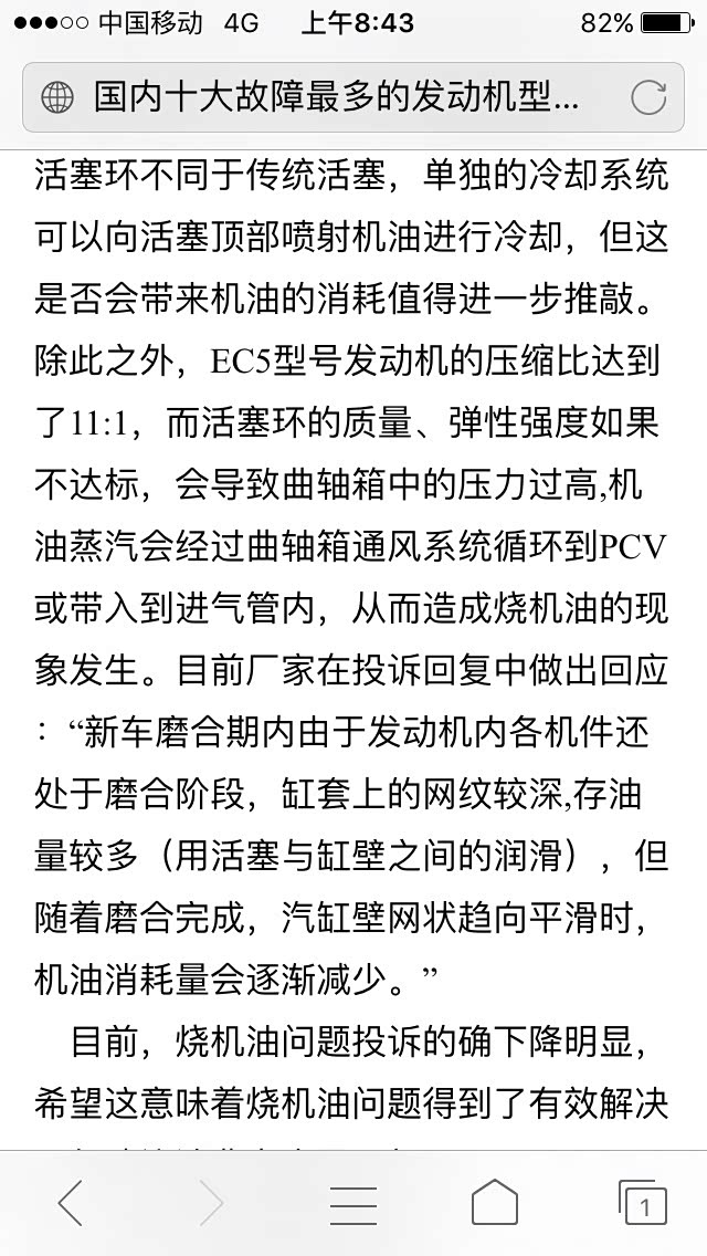 提车时候是少一格,刚才看到论坛有人反应烧机油问题!果断去看看,跑了1400公里竟然少了3格!我也是服了!难道真是人品问题吗?就没有不烧机油的吧!后悔买标致301了!第一不是车黑,第二,狗腿子不要随便喷!3月买的车,正常行驶,从来没有极速超过80km/小时