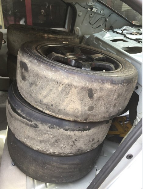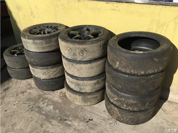 赛道日开始前,进行换胎工作,换上全热熔轮胎,俗称光头胎