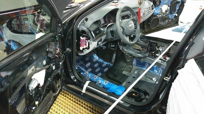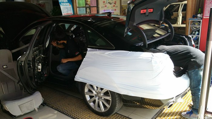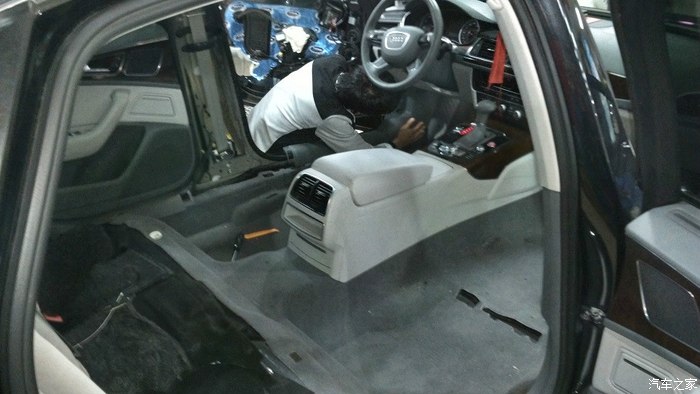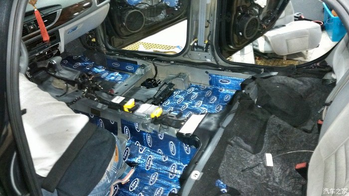 地板施工中(a6l拆开后和迈腾的结构可以说一模一样,怪不得现在掉价掉成那样了,相比迈腾的价格就是暴力呀~!!!!!)