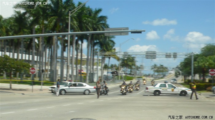 恰遇奥巴马那天也去了迈阿密港口,港口封路了,这是他的先导摩托车队,全部是金色的。。