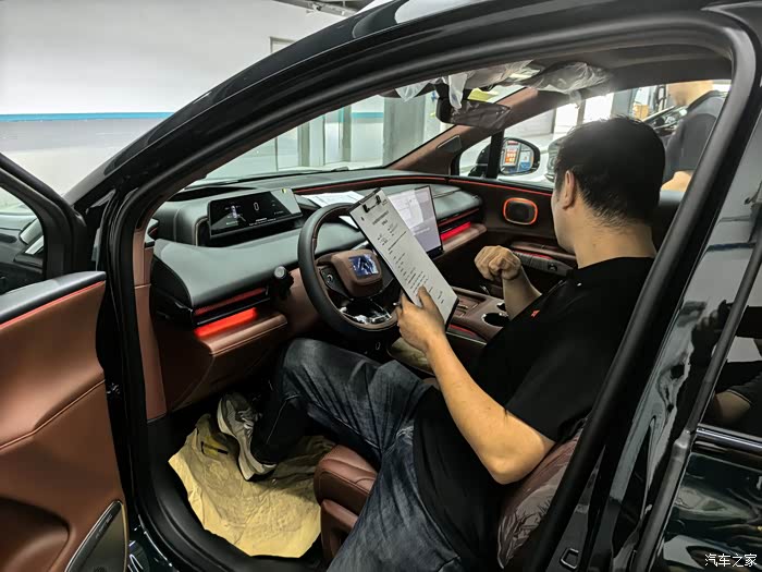 车辆检查环节堪称细致入微:工作人员手持检查清单,逐项确认漆面、轮胎、内饰、灯光等细节,甚至用专业仪器检测了电池健康度。妻子特意测试了二排的“零重力座椅”,一键调整至127.5°躺姿,热石按摩功能让她直呼“这才是真正的陆地游艇” 。交付专员还演示了APP远程控车功能,提前开启空调的操作让炎热的杭州午后瞬间清凉 。