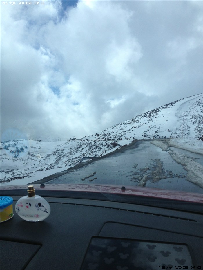 路面有结冰噢,在进藏路上大家一定要备防滑链,以防万一,我们没有防滑链开起来都有点提心吊胆!