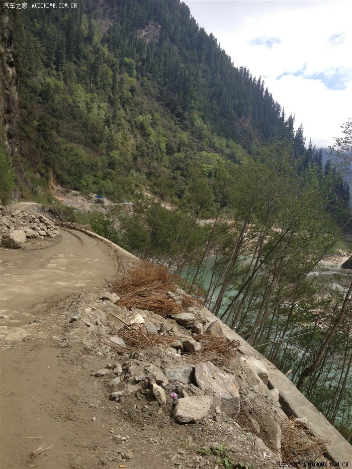 山崖落石,下面就是雅鲁藏布江,小心咯,对面的车先走吧,我等着!我可不想在悬崖边跟大车错车