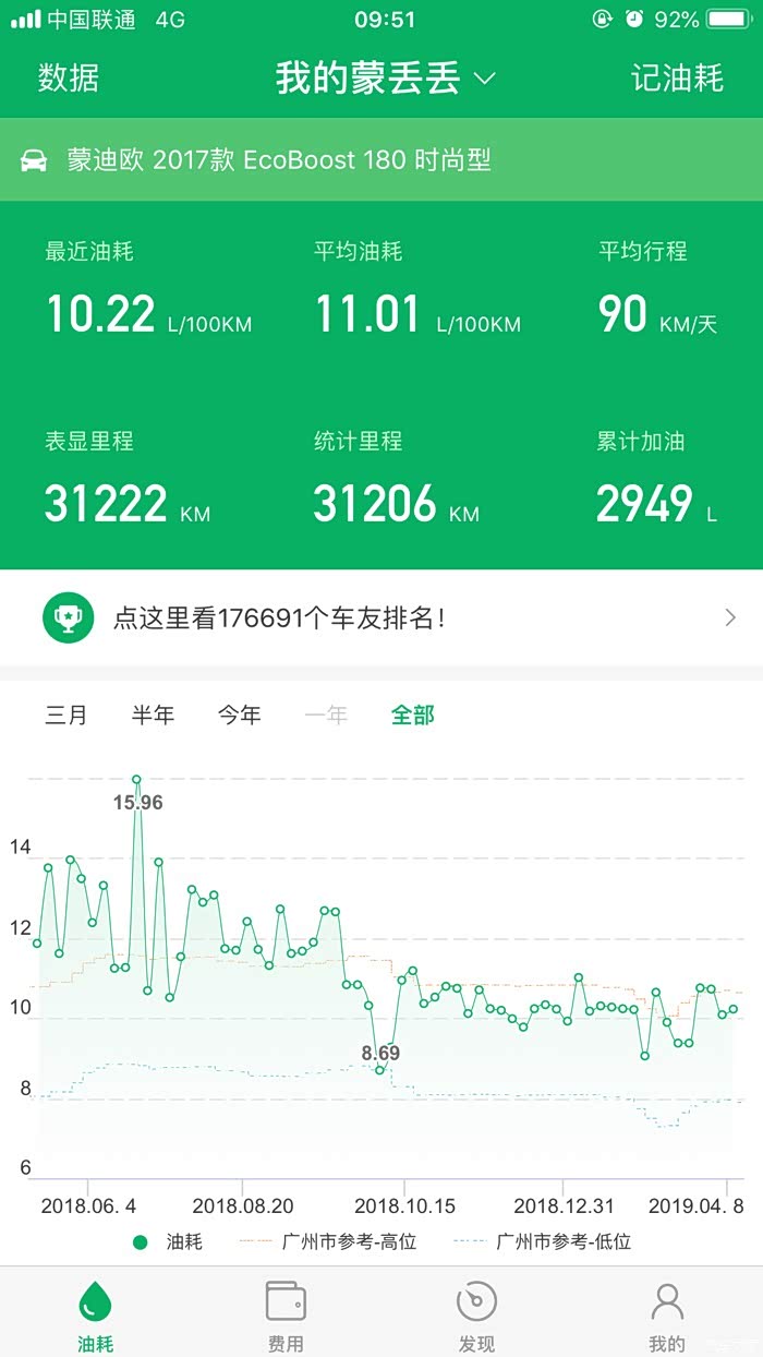 有点高了。郊区10个油以内没毛病。不过都开的起蒙迪欧了。不差这点油了