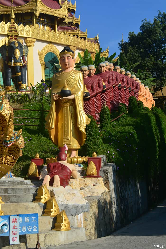看多了雕梁画栋的中国传统古建筑,游多了太多的名山古寺、朋友们你们是否已经视觉疲劳了、来到芒市的“勐焕大金塔”让我从内心里感觉到一种振憾,雄伟壮观的大金塔、有一种别样的庄严,它带给我的是强烈的视觉冲击,艳丽的色彩非常漂亮、金塔里的每尊佛像和人物的造型都让我觉得离我很遥远,又陌生、其实这也是我每次出游最想寻找的感觉。