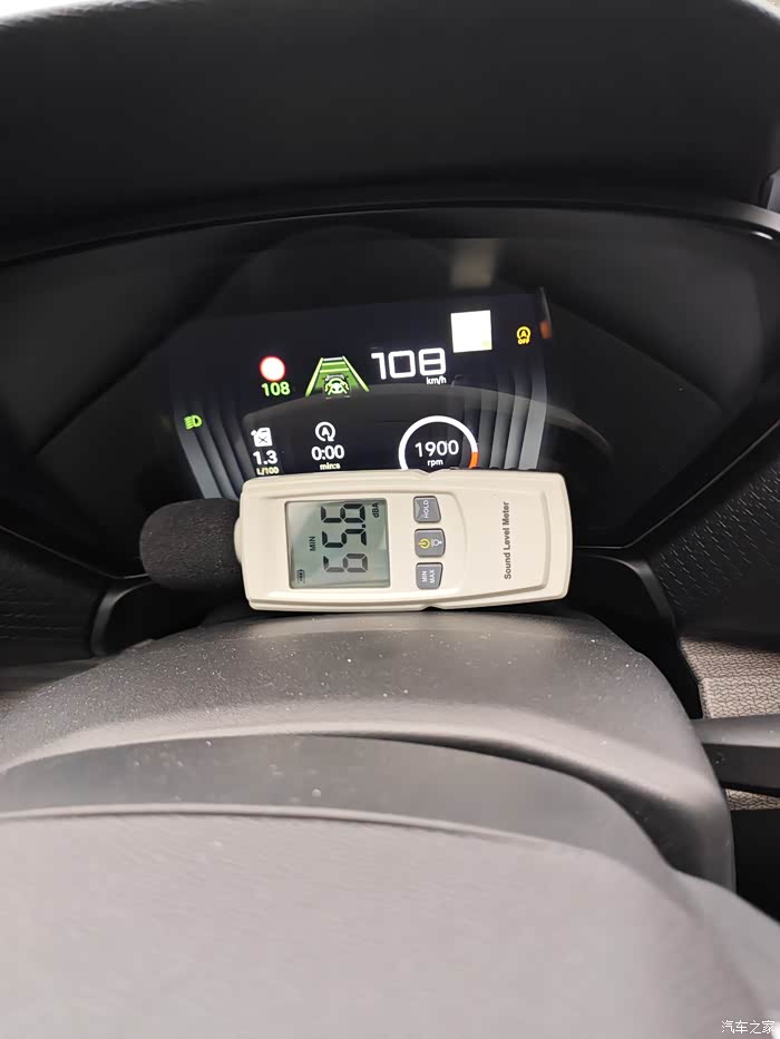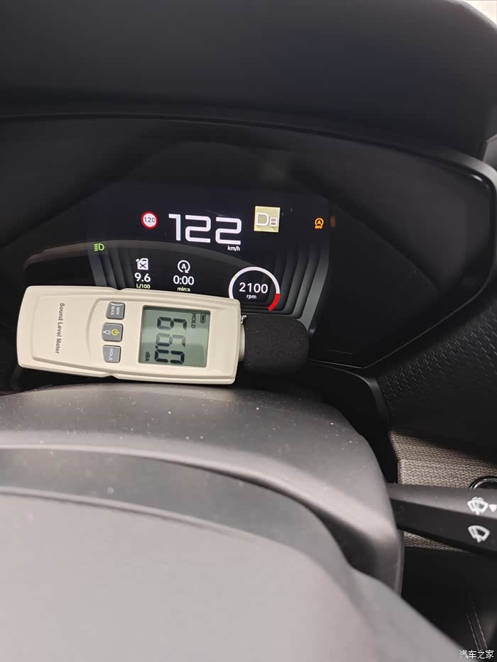 在高速工况下,凡尔赛122km时速分贝仪噪音测试结果为66db!远远低于手机软件测试的74db!